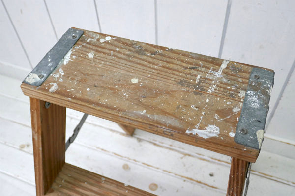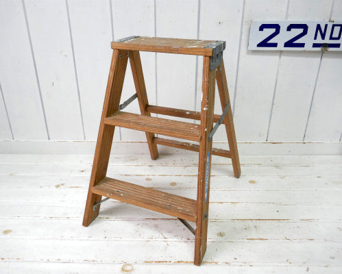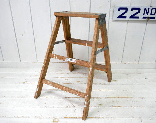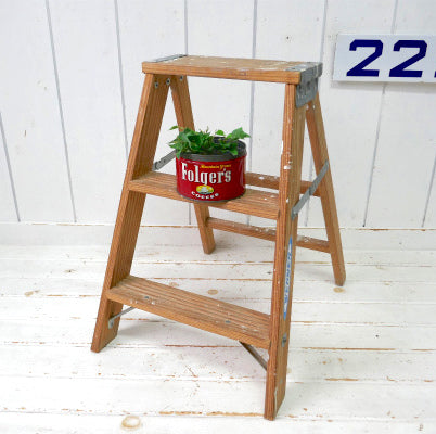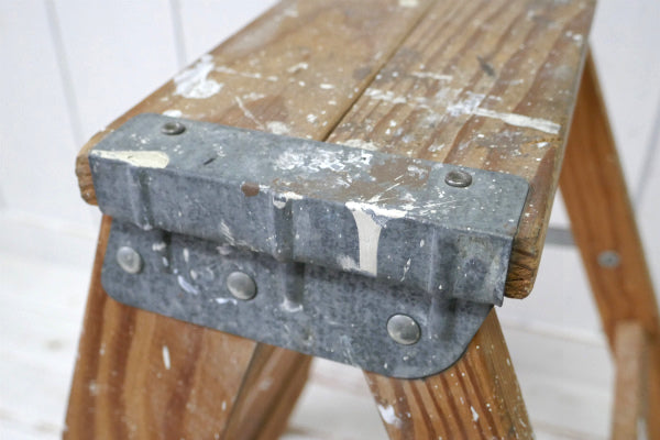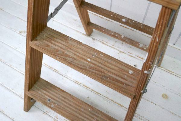 白いペンキの付いた 木製 ヴィンテージ ステップラダー 脚立 ステップスツール DIY ガーデニング USA