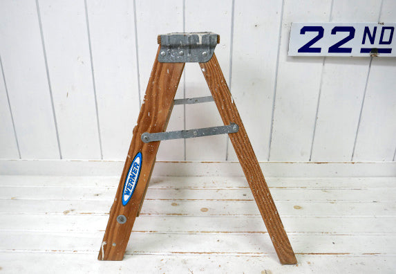 アメリカ西海岸・カリフォルニア州・サンフランシスコで見つけました・・『WERNER Co.』の木製・ヴィンテージ・ステップラダー(脚立)です。