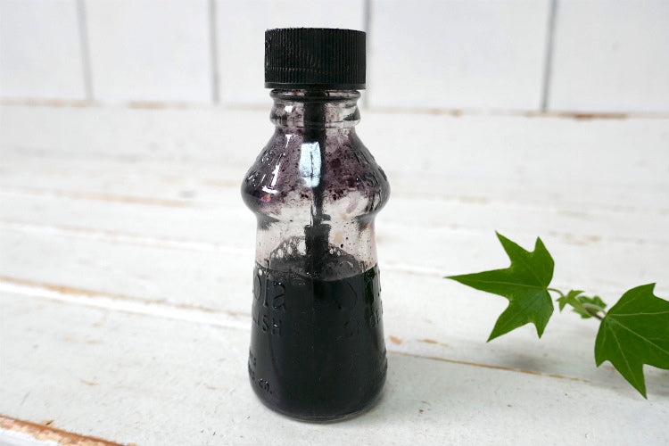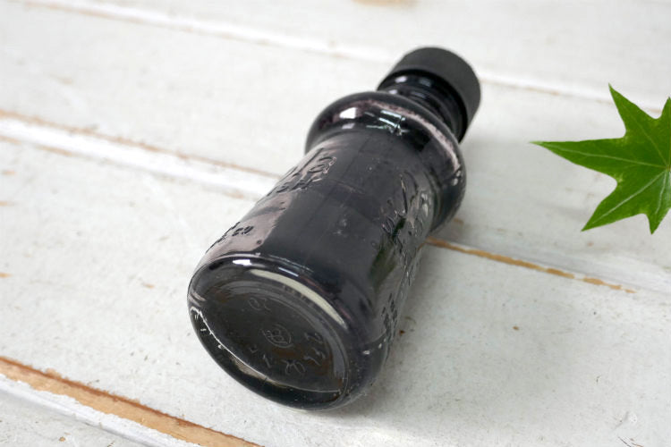 靴のツヤを出すシューポリッシュ(靴磨き)のブラックカラーが入っているガラス瓶です。の容器です。
