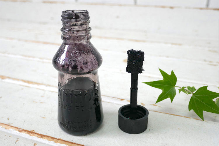 Shinola SHOE POLISH 40's ヴィンテージ シューポリッシュ シューシャイン 靴磨き ガラス容器 ボトル 瓶 ブラック USA エンボス