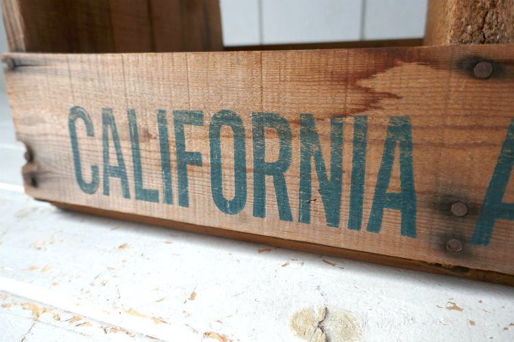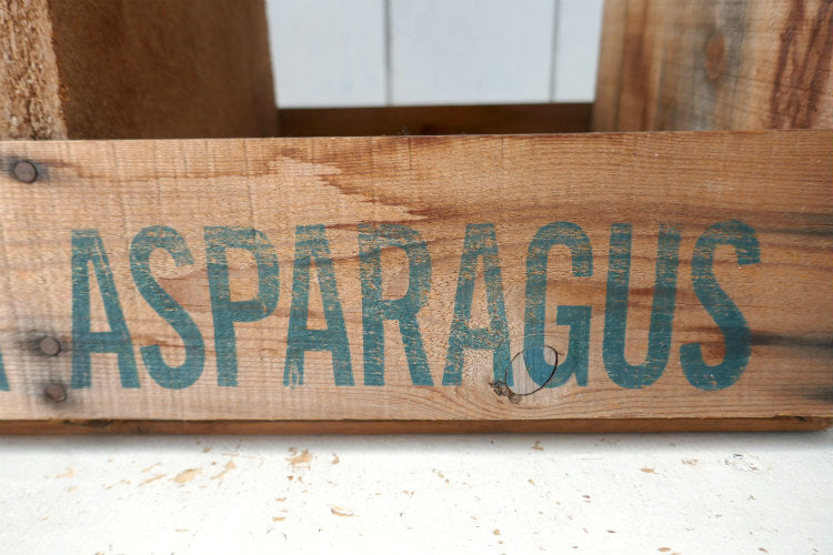 アメリカ西海岸・カリフォルニア州・サンフランシスコの田舎町で見つけました・・『CALIFORNIA ASPARAGUS』のヴィンテージ・ウッドボックスです。