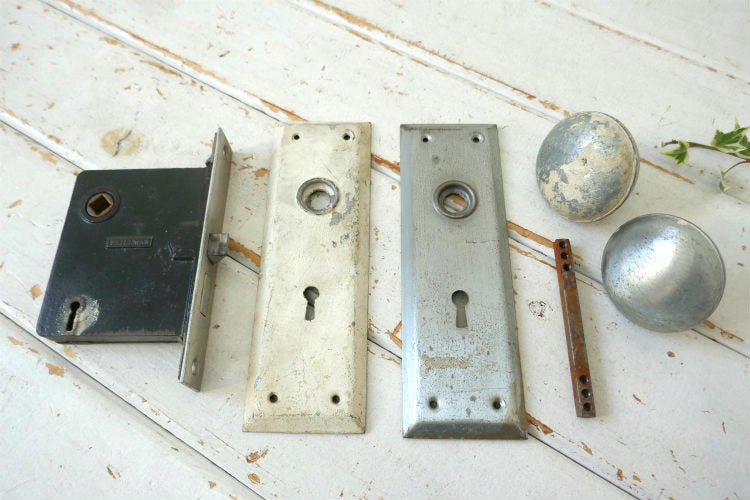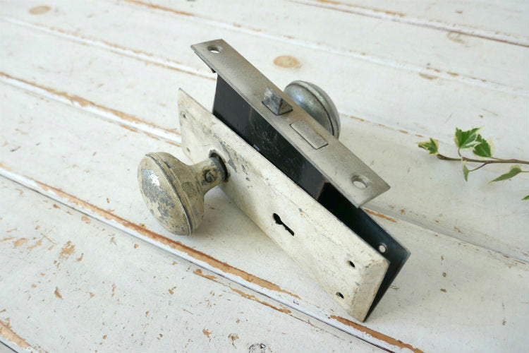 Skillman 白いペンキ付き メタル製 角座&ラッチケース アンティーク ドアノブ ドアレバー 建材 USA
