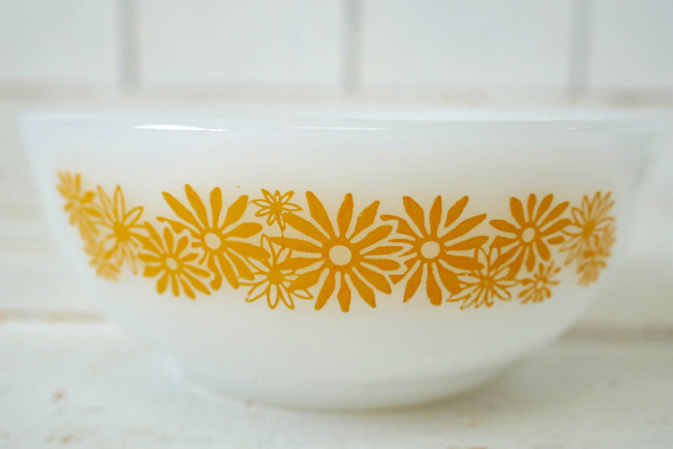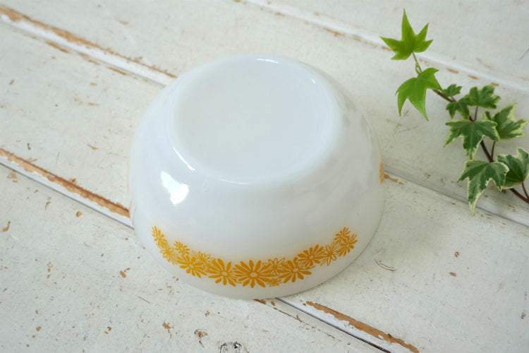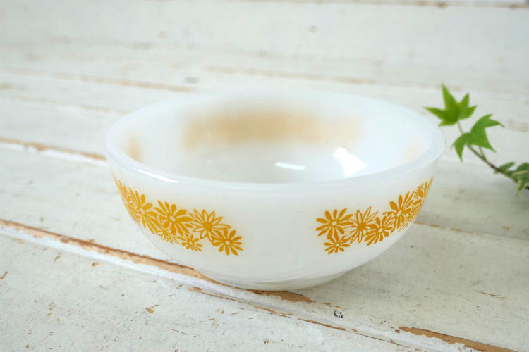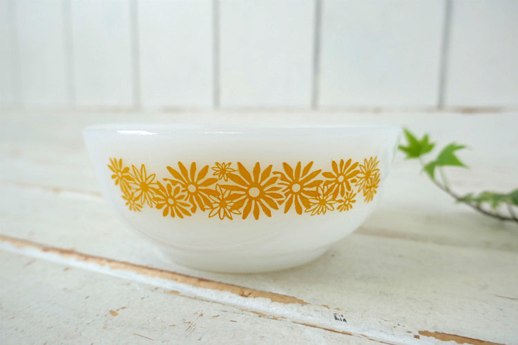 グラスベイク Glasbake 花柄 イエロー デイジー ミルクガラス製 ヴィンテージ シリアルボウル ボウル 食器 USA 美品