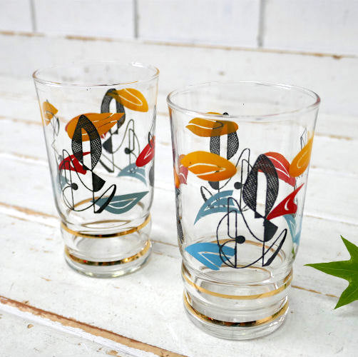 アトミック アブストラクト カラフル 50's ヴィンテージ グラス タンブラー ガラスコップ 食器 USA