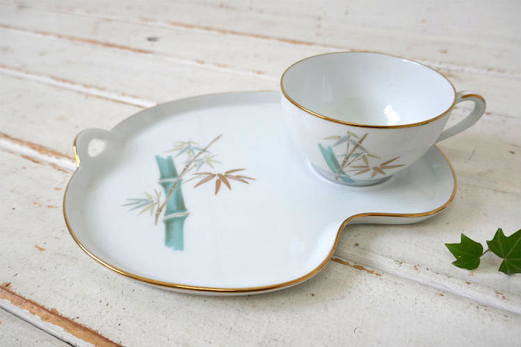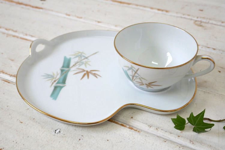 ヴィンテージ ノリタケ オリエンタル 竹 バンブー柄 OLD 6341 スナックセット Noritake プレート ティーカップ ゴールドトリム