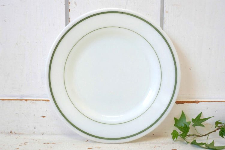 PYREX パイレックス オールドパイレックス レストランウェア グリーンライン ミルクガラス製 ヴィンテージ ディナープレート 皿 食器 USA