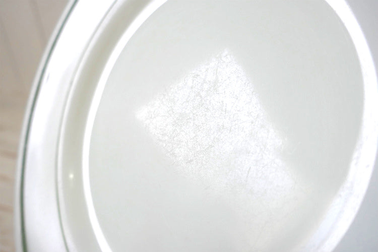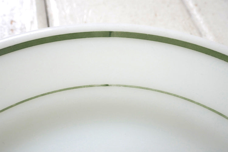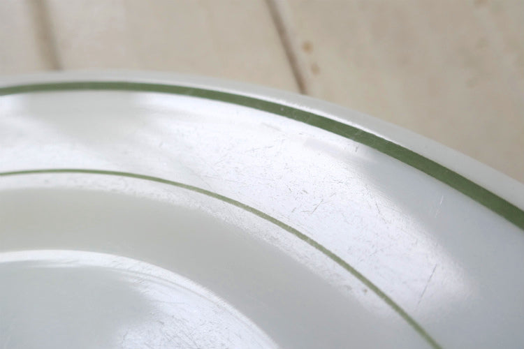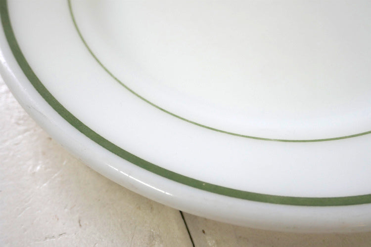 白いミルクガラス製プレートのまわりに、グリーンの2本ラインが入っております。