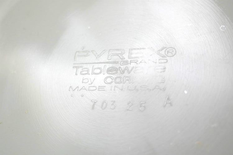 ボトムのバックスタンプは【PYREX ® BRAND Tableware by CORNING MADE IN U.S.A. 703 25 A】です。