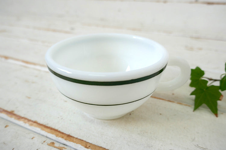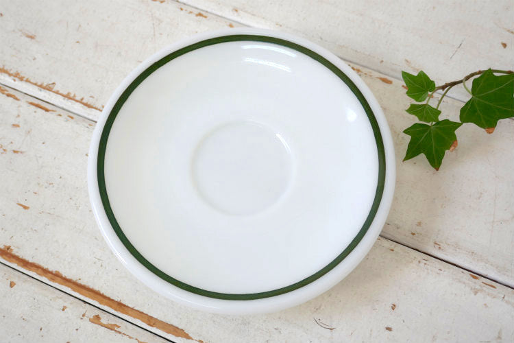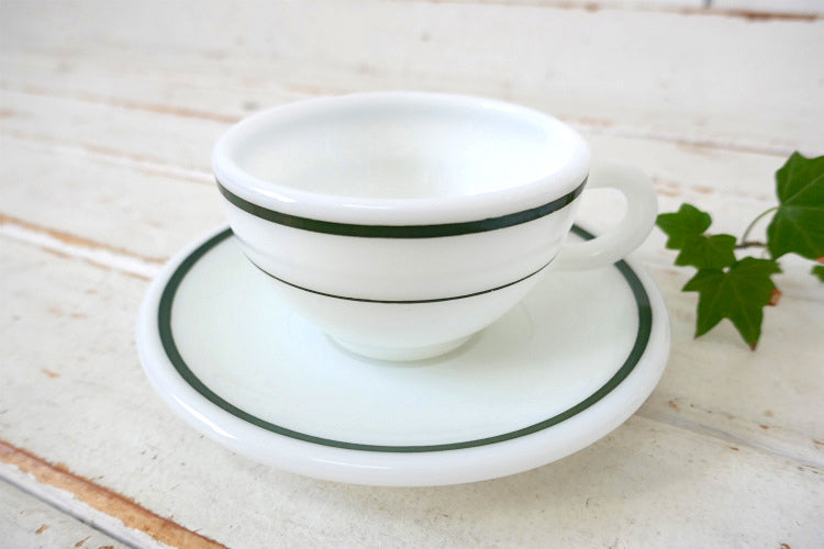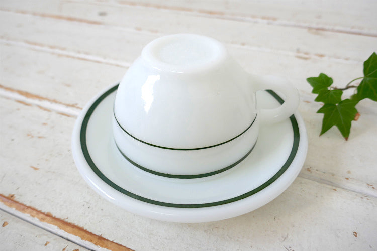 CORNING コーニング ミルクガラス レトロ グリーンライン ヴィンテージ カップ&ソーサー 食器 USA