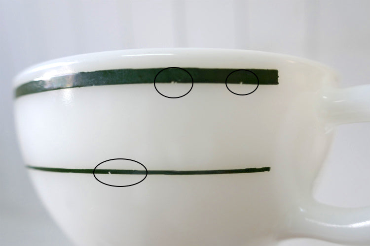 経年により、グリーンライン数カ所に小さなペイントロスがございますが、ヒビ・欠け無く、カップの内側の状態も良好で、全体的にグッドコンディションです。