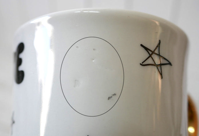 経年による多少のヨゴレ・小さなスリキズ・ゴールドハンドルの塗装剥がれ箇所・製造時の表面ザラツキ&着色等ございますが、ヒビ・欠けのダメージはございません。
