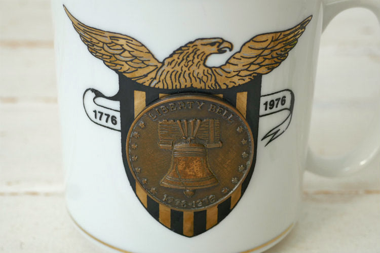 Bicentennial アメリカ建国200周年 イーグル自由の鐘 メダル付き セラミック製 ヴィンテージ マグカップ 記念品 食器