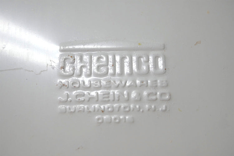 ボトムに【CHEINCO HOUSEWARES J.CHEIN&CO BURLINGTON, N.J. 08016】とエンボスが入っています。