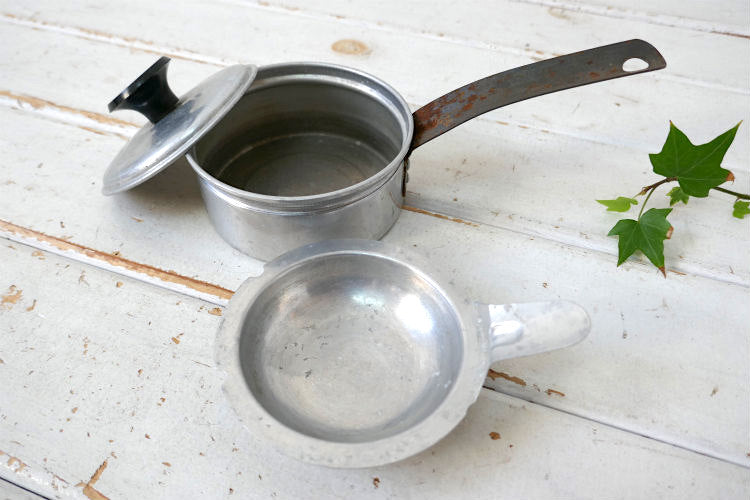 ポーチドエッグ アルミ製 ヴィンテージ アルミパン 片手鍋 ソースパン キャンプ アウトドア USA
