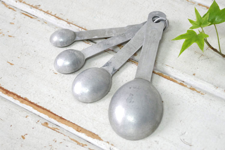 Swans Down Cake Flour 小麦粉ブランド アルミ製 ノベルティ ヴィンテージ メジャーリングスプーン 計量スプーン 4本セット USA