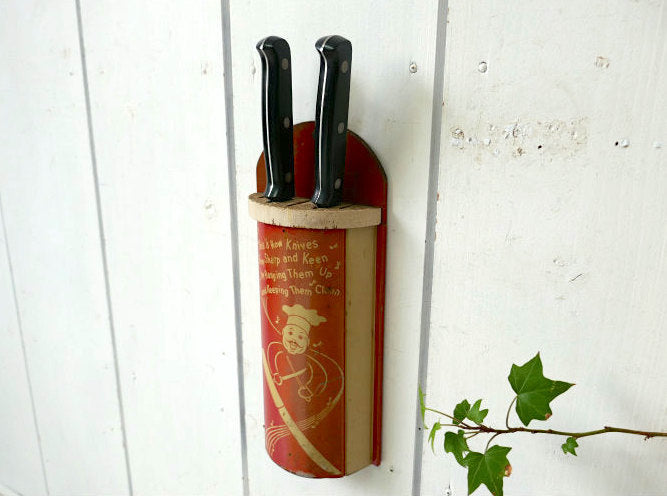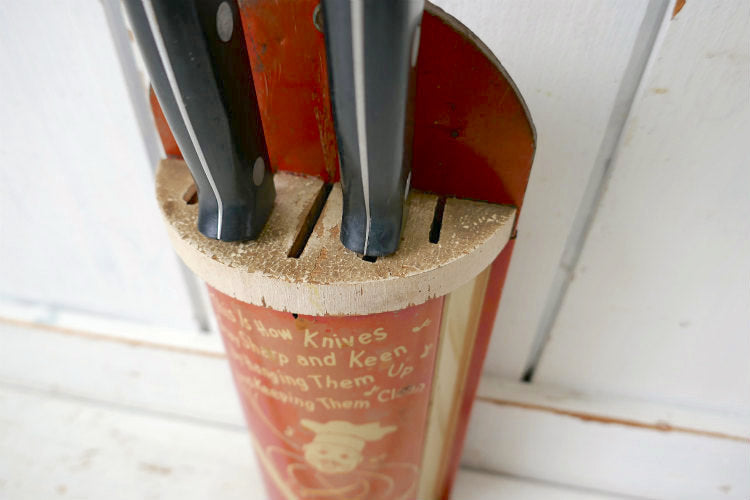 OLD シェフ 木製 ティン製 1940~1950s ヴィンテージ キッチン ナイフホルダー 包丁スタンド USA