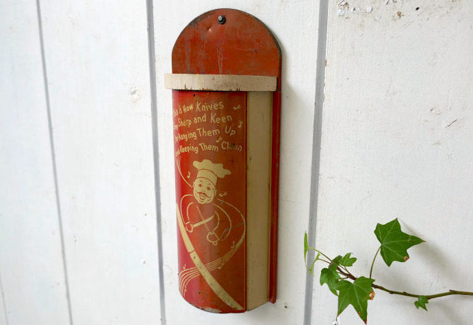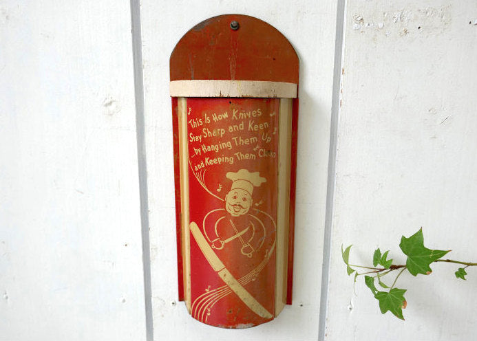 アメリカ西海岸・カリフォルニア州・サンフランシスコで見つけました・・木製×ティン製の壁掛け・ヴィンテージ・キッチン ナイフホルダーです。