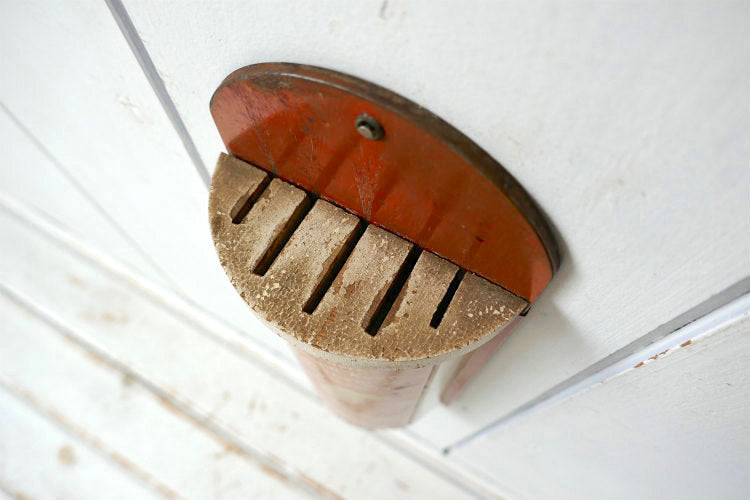 背面&ナイフ挿入口は木製、半円形のカバーはティン製です。