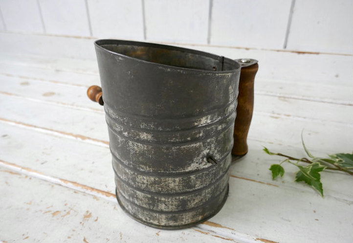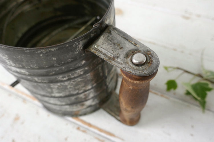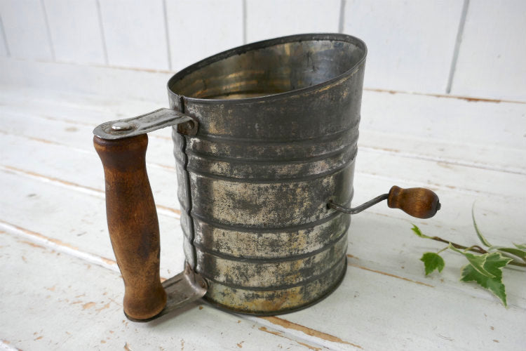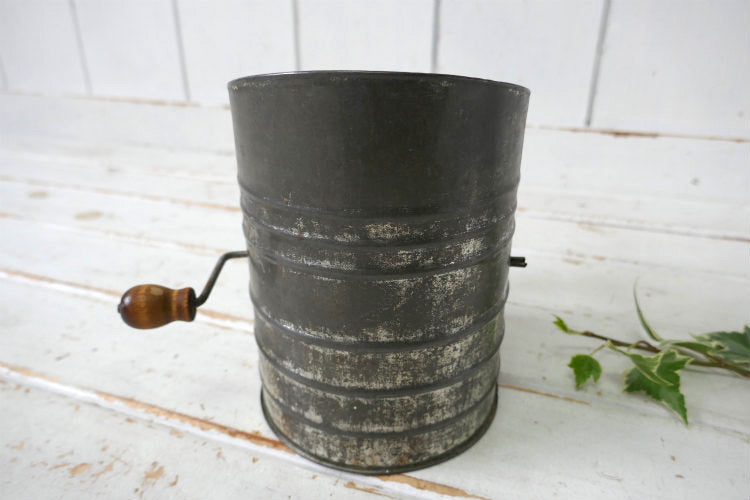 1930s~ 木製ハンドル メタル製 ヴィンテージ 粉ふるい シフター フラワーシフター キッチンツール USA