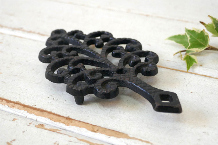 アメリカ西海岸・カリフォルニア州・サンフランシスコで見つけました・・キャストアイアン製の小さなヴィンテージ・鍋敷き(トリベット)です。