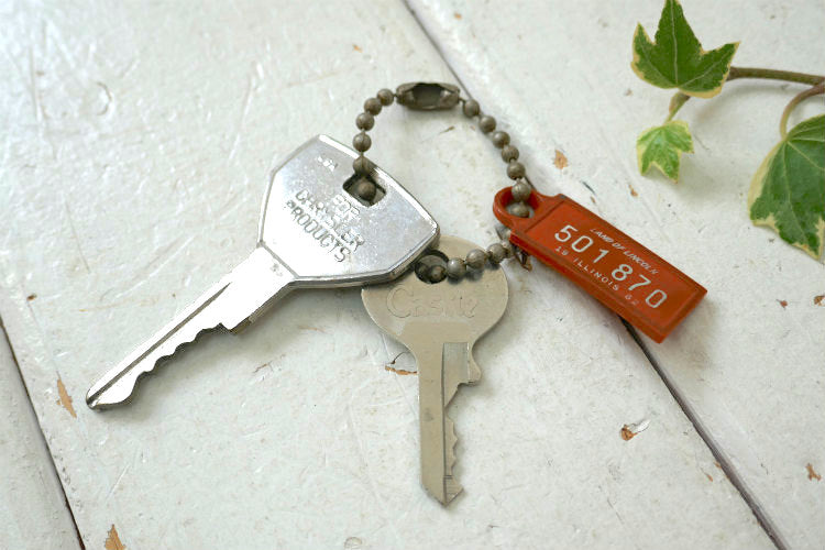 クライスラー 1962's イリノイ州 ナンバープレート型 アメリカ退役軍人 ヴィンテージ キーホルダー 古鍵 2本付き アメ車 USA