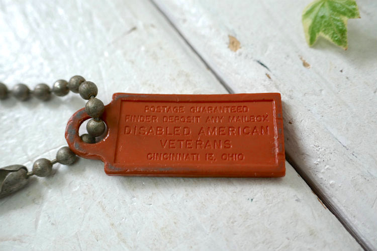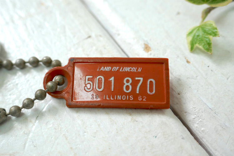 イリノイ州・ナンバープレート型 "LAND OF LINCOLN"・ヴィンテージ キーホルダー+古鍵 2本付き(クライスラー etc) ボールチェーン付き LAND OF LINCOLN /501 870/1962 ILINOIS 裏面にはPOSTAG...DISABLED AMERICAN VETERANS...13,OHIOの記載がございます。