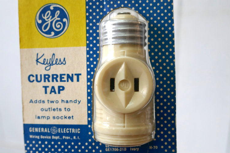 アメリカ西海岸・カリフォルニア州・ロサンゼルスで見つけました・・『GENERAL ELECTRIC(ゼネラル・エレクトリック)』のデッドストック・ヴィンテージ・1灯2差ソケット″Keyless Current Tap″です。