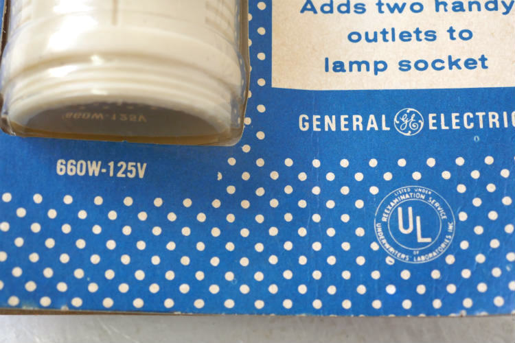 パッケージに【Keyless CURRENT TAP Add two handy outlets to lamp socket / GENERAL ELECTRIC Wiring Device Dept.,Prow.,】【GE1706-11D Brown GE1706-21D Ivory H-70】【 660Wー125V】とございます。