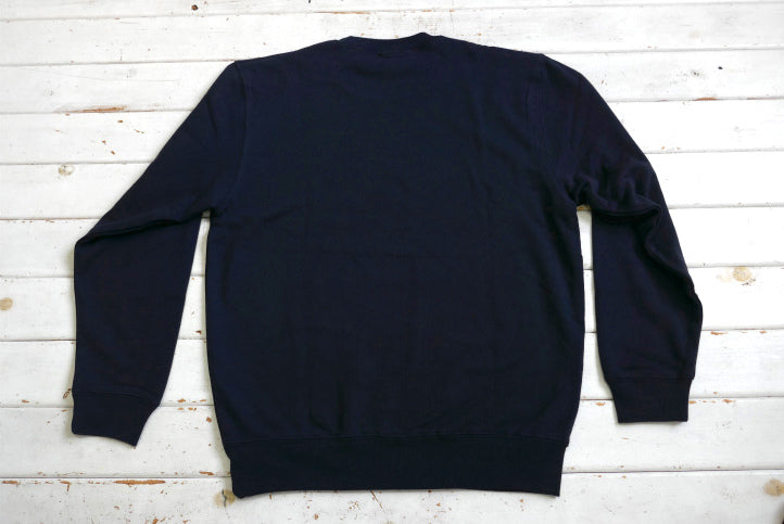 袖口&襟口のリブと身頃のシームラインはダブルステッチ始末、首リブもダブルステッチ、着込むほどに味が出るスウェットです。