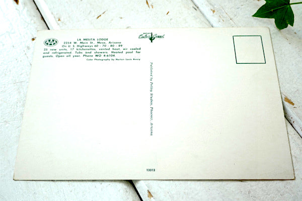 AAA トリプルエー LA MESITA LODGE 1950~1960s アリゾナ州 アメ車 当時 星条旗 フラッグ 風景 写真 ・ヴィンテージ・ポストカード ハガキ・絵葉書・印刷物