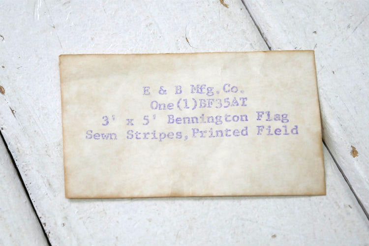 紙タグに【E&B Mfg.Co. One(1)BF35AT 3'×5' Bennington Flag Sewn Stripes, Printed Field】とございます。