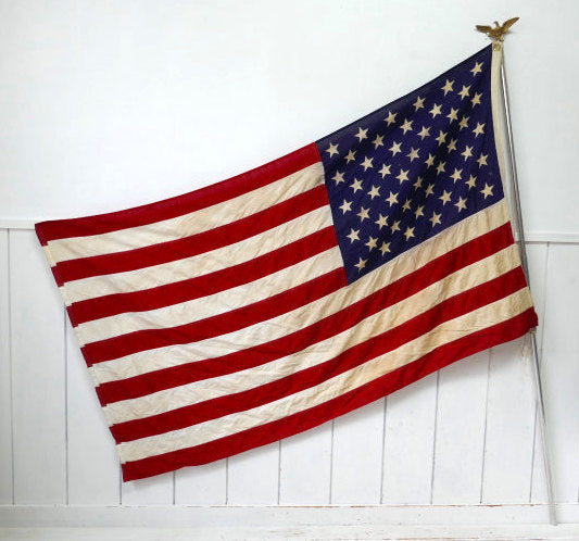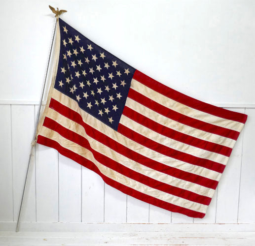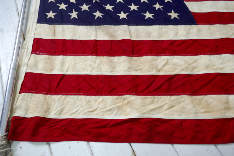 アメリカ西海岸・カリフォルニア州・サンフランシスコで見つけました・・特大サイズのポール付き・50スター・ヴィンテージ・星条旗(アメリカンフラッグ)です。