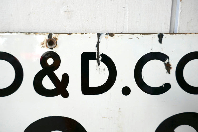 アメリカ西海岸・カリフォルニア州・ロサンゼルス郊外で見つけました・・『C.W.O & D. CO.』のホーロー製・ヴィンテージ・サイン(看板)です。