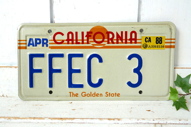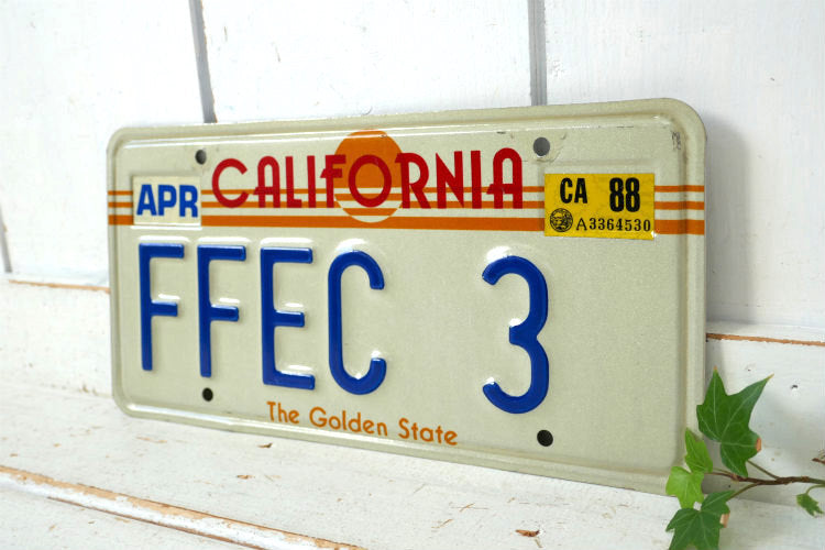 CALIFORNIA カリフォルニア ヴィンテージ ナンバープレートAPR CA88 FFEC 3 The Golden State アメ車 USA