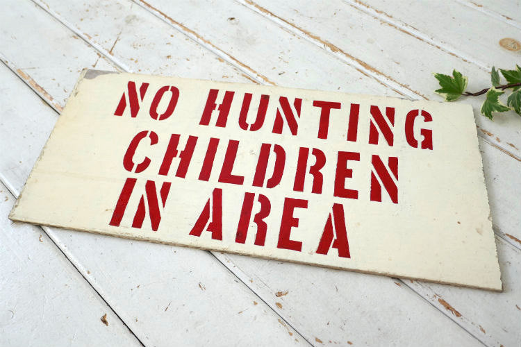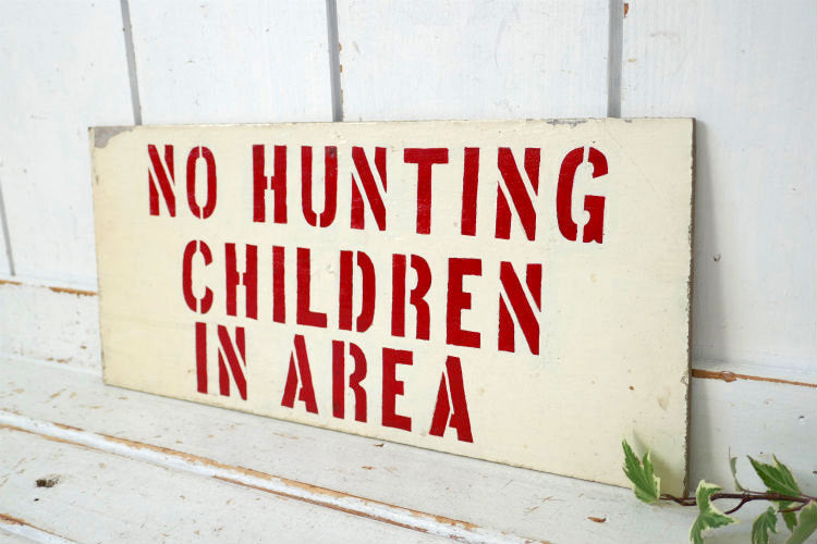 No Hunting Children In Area 狩り禁止 木製 ステンシル ヴィンテージ サインプレート サイン 看板 ガレージ USA