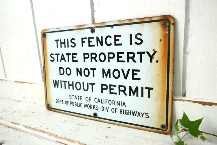 THIS FENCE IS STATE PROPERTY ホーローサイン カリフォルニア ヴィンテージ 看板 サインプレートUSA