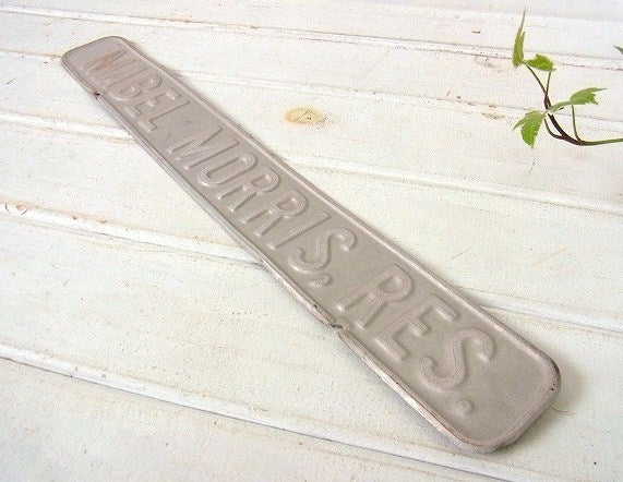 アメリカ西海岸 カリフォルニア州 ロサンゼルスで見つけました・・『MABEL MORRIS. RES.』のアルミ製・ヴィンテージ・サインプレートです。