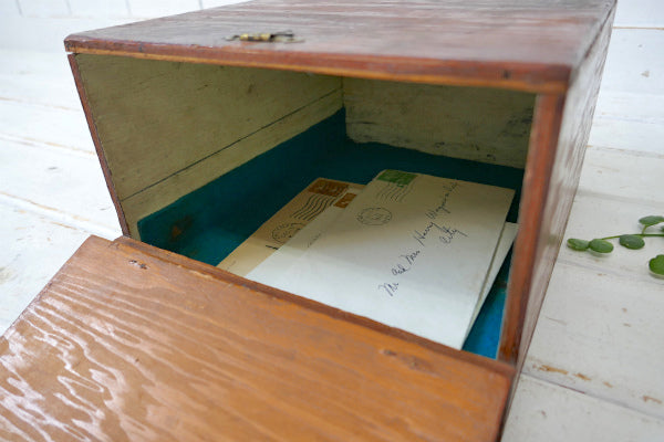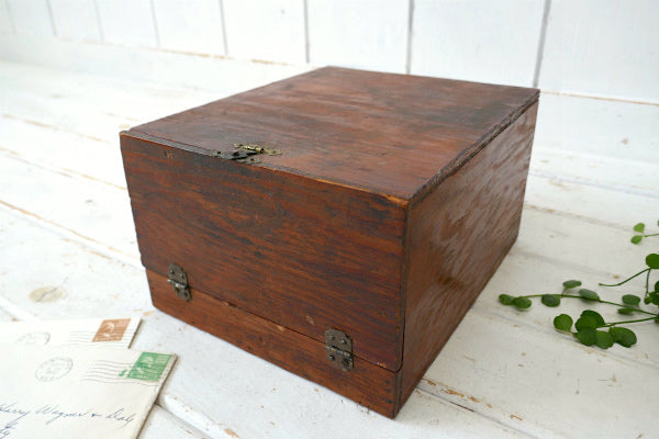 レトロな飴色・木製・ヴィンテージ・卓上チェスト・書類ケース・収納ケース USA