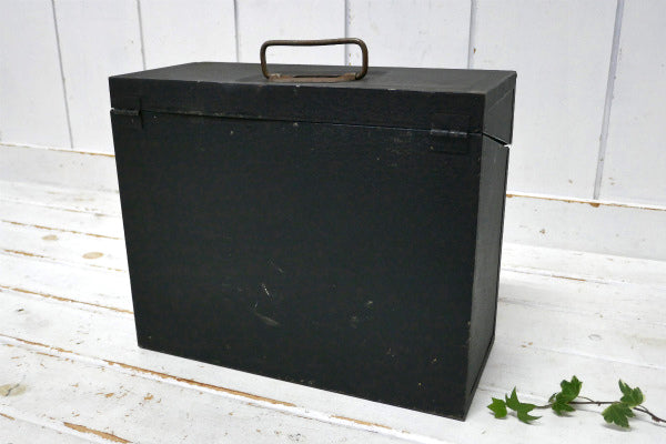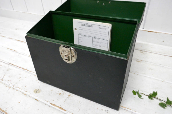 Union Steel Chest Co ブラック×グリーン スチール製 ヴィンテージ ファイルケース 書類ケース USA レコード