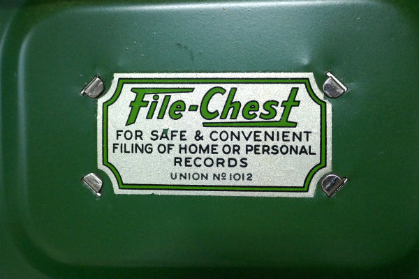 フタ内側のデカールに【File-Chest FOR SAFE&CONVENIENT FILING OF HOME OR PERSONAL RECORDS UNION No.1012】の印字、金具部分に【8007】と刻印が入っています。