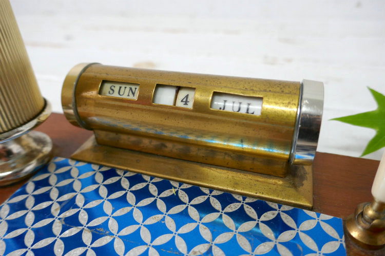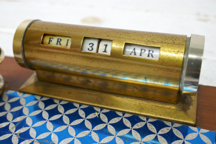 カレンダーはゴールドトーンのメタル製、両端のツマミはプラスティック製です。
