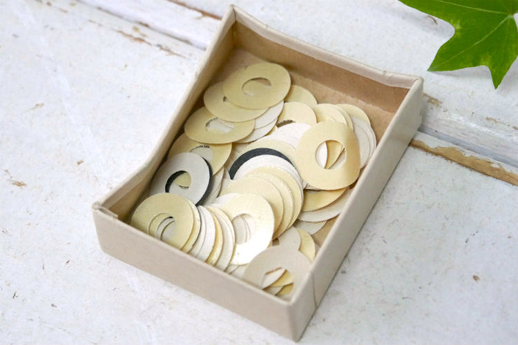 箱の中に、直径4㎝のパンチラベルがたくさん入っております。