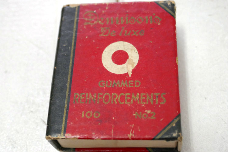 パッケージに【Dennison De Luxe Gummed Reinforcements 100 No.2】、背面にメンディングテープのイラストなどのプリントが入っております。