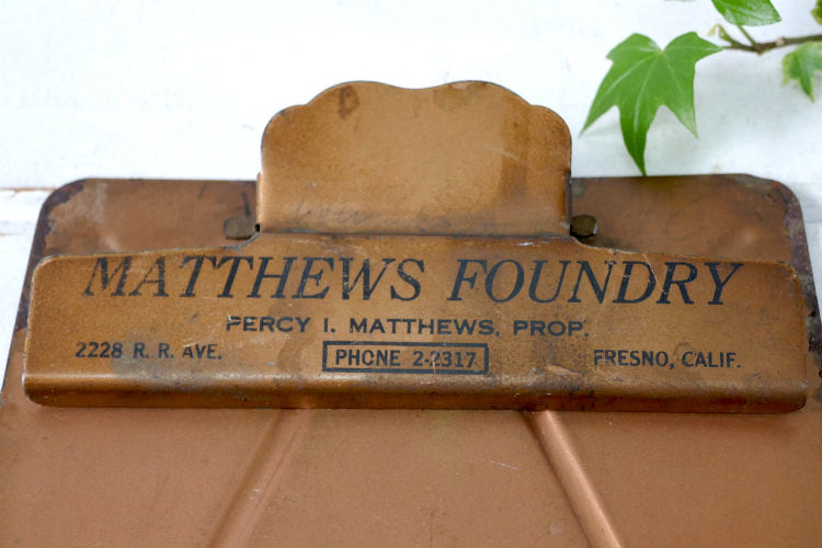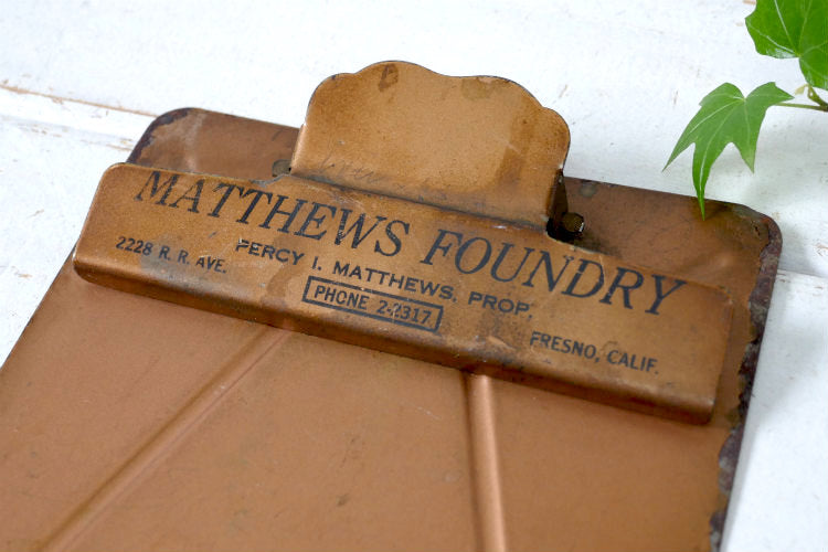 MATTHEWS FOUNDRY カリフォルニアOLD メタル製 アドバタイジング ヴィンテージ バインダー クリップボード USA インダストリアル