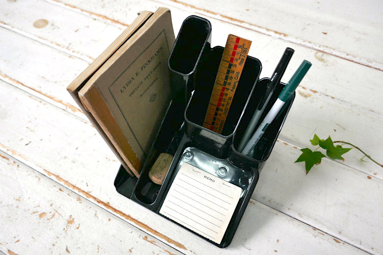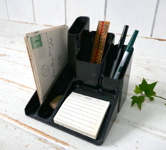 アメリカ西海岸・カリフォルニア州・ロサンゼルスで見つけました・・『Newell Office Products Co.』のブラックカラー・プラスティック製・ヴィンテージ・デスクオーガナイザー(ペン立て&スタンド)です。