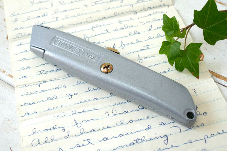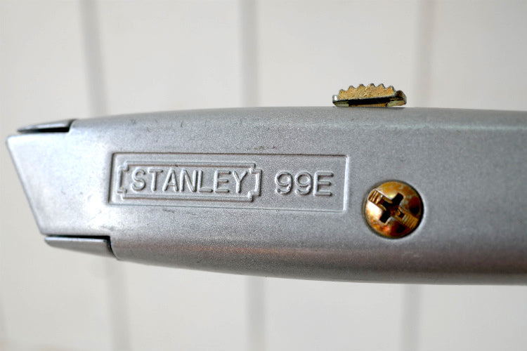 アメリカ西海岸、カリフォルニア州・ロサンゼルス ガレージ 内で見つけました・・STANLEY スタンレー の工業系デザイン・99E・ヴィンテージ・カッター ナイフ(手作業工具・文房具)です。
