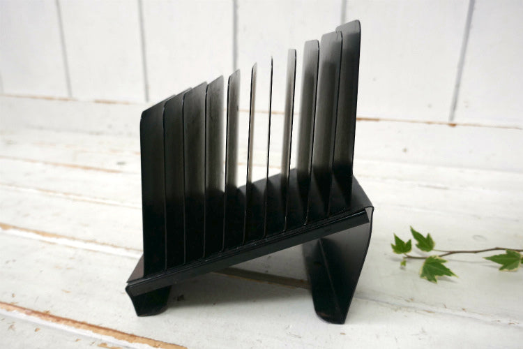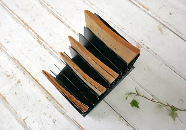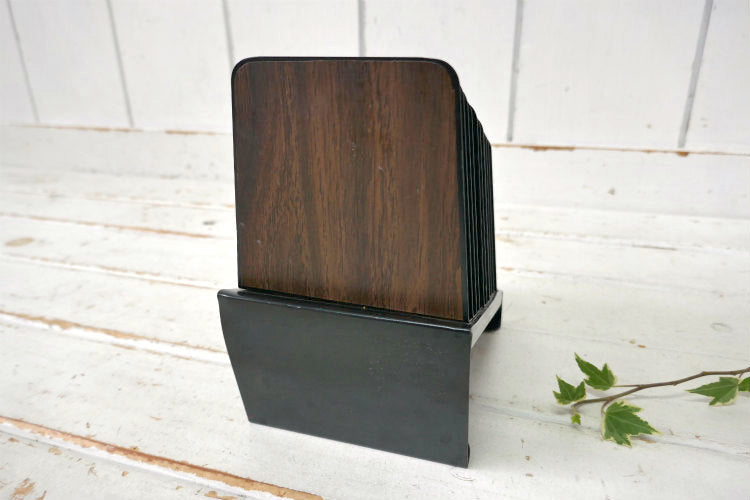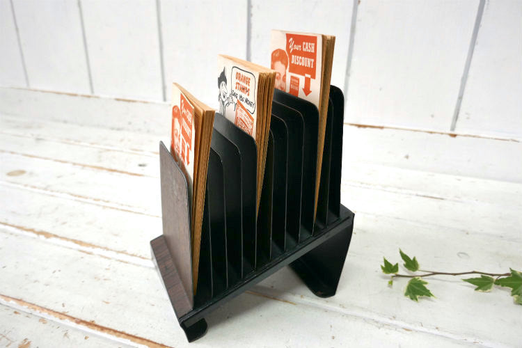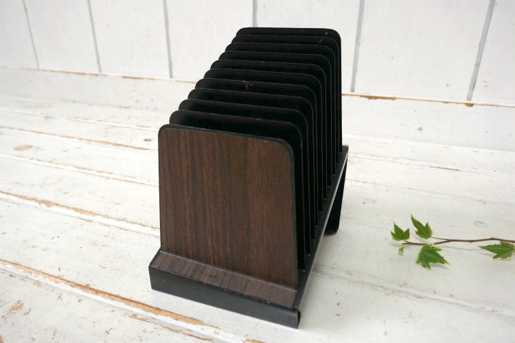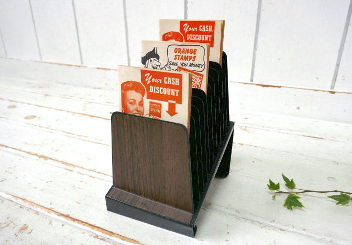HUNTLIT-NING ウッド柄 メタル製 インダストリアル 10列 ヴィンテージ 書類スタンド ファイルスタンド カードホルダー USA