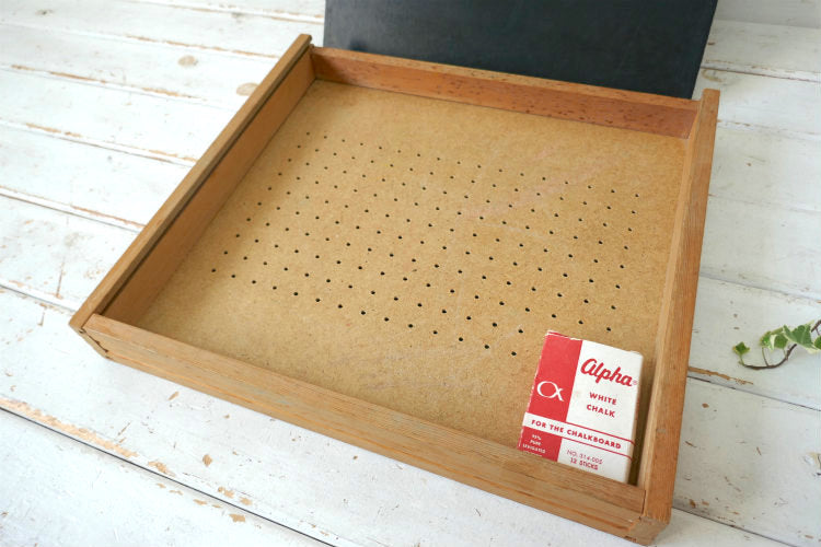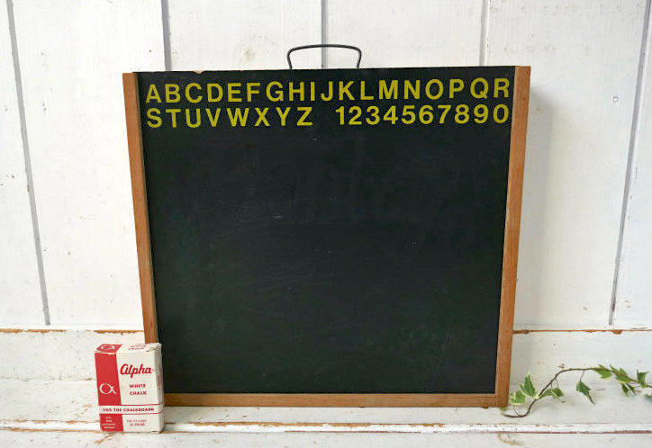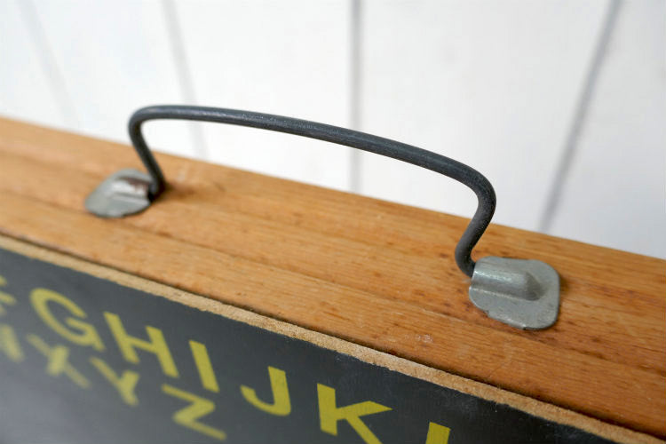 アルファベット 数字 学習用 チョーク付き 木製 収納ケース ヴィンテージ 黒板 BOX ブラックボード USA