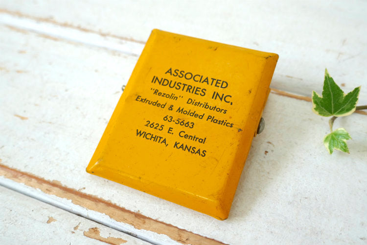 イエローボディに黒文字で【ASSOCIATED INDUSTRIES INC "Rezolin" Distributors Extruded & Molded Plastics 63-5663..../SCHELDT CO Aircraft & ...TWX -WI 266】と入っております。