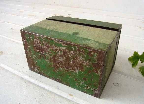 アメリカ西海岸・サンフランシスコで見つけました・・オリーブグリーンカラー・メタル製・カード付き・ヴィンテージ・カードボックス